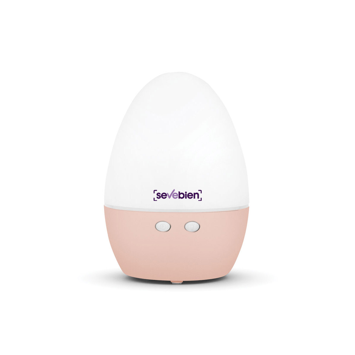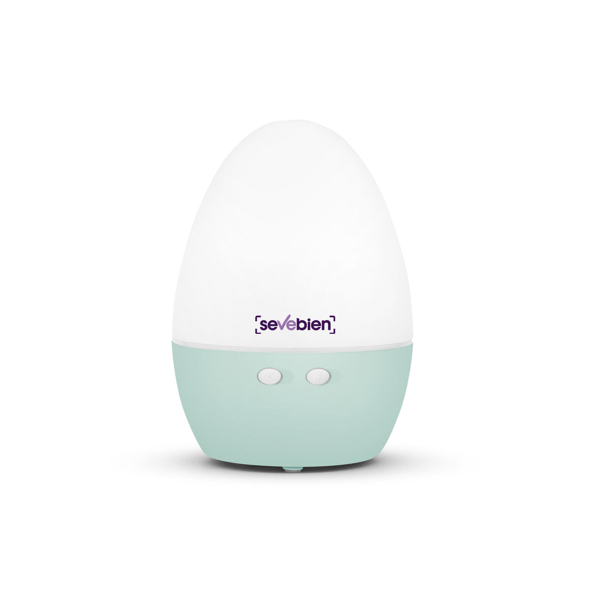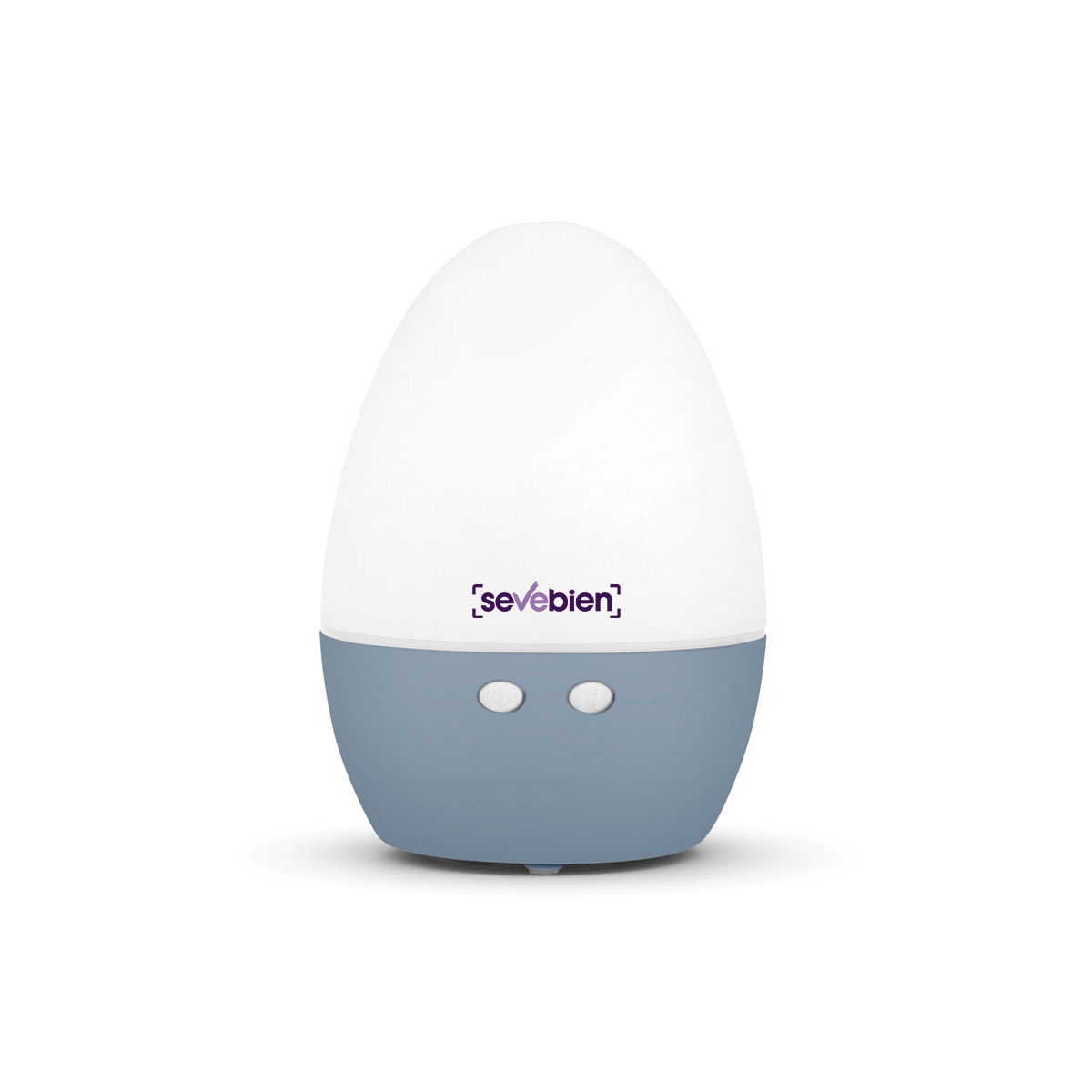 Ø 10,5 x 15 cm. Plástico + Polipropileno. Luz cálida (2 intensidades) y modo fade continuo entre luz tenue y luz fuerte. Difusor de aroma. Eggy tiene una luz tenue y emite un fresco vapor con el aroma de tu esencia favorita. Un placer para los sentidos. Presentación en caja de regalo.