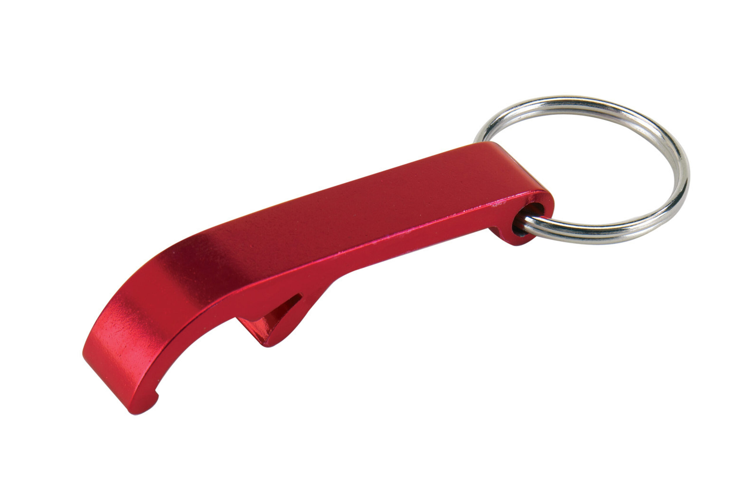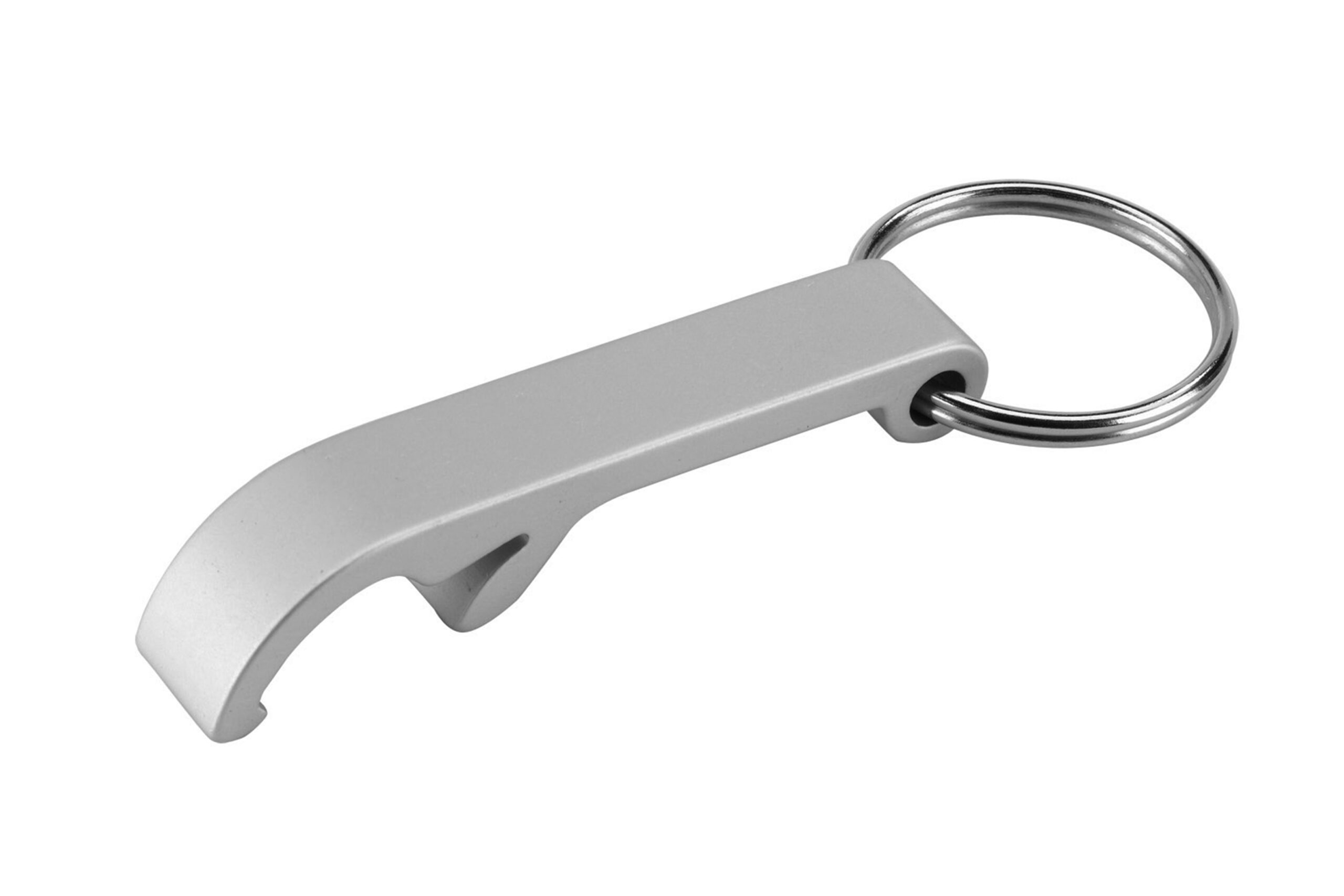 Aluminio. 5,5 x 1 x 1,1 cm. Llavero que permite ser usado como destapador.