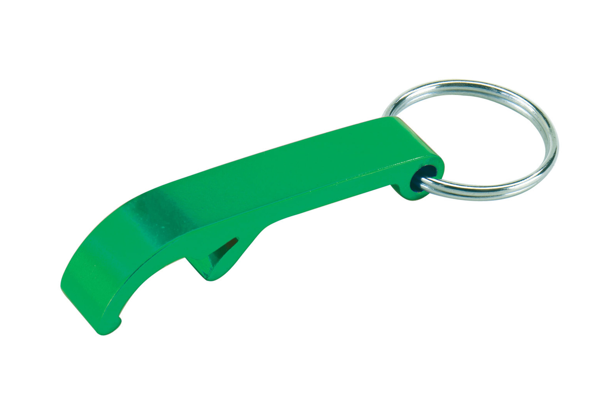 Aluminio. 5,5 x 1 x 1,1 cm. Llavero que permite ser usado como destapador. Tampografía Serigrafía Grabado en pantógrafo RECICLABLE REUTILIZABLE